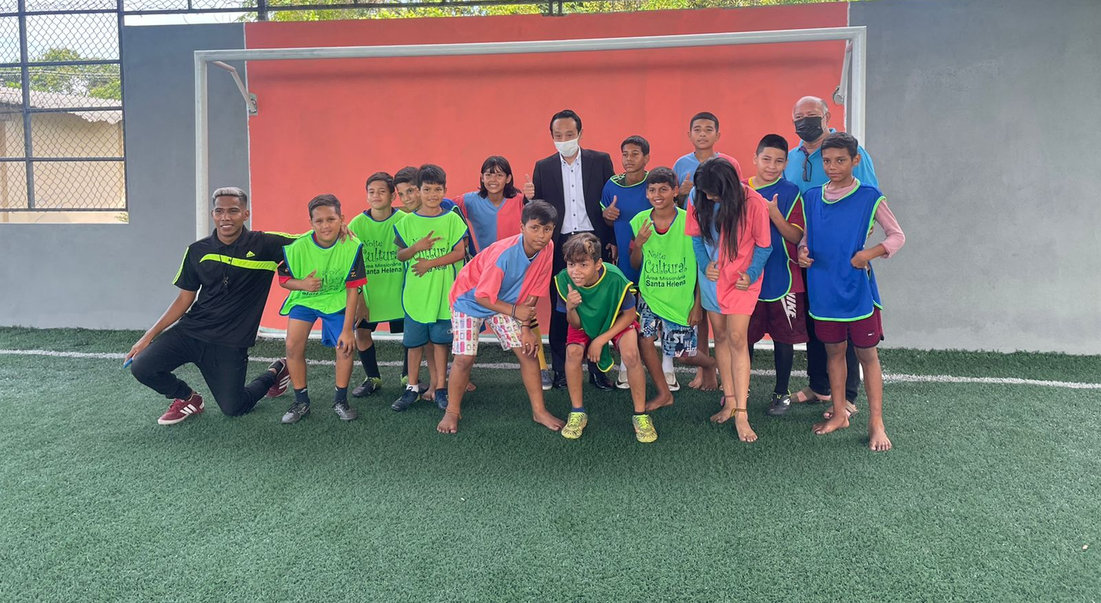 As crianças pediram para fazer fotos com o Sub Consul do Japão, após ele particpar de uma partida de futebol com as proprias crianças